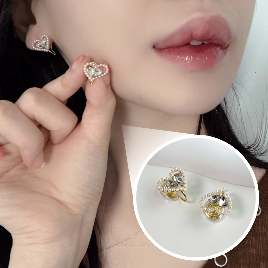 [당일배송🔥] 작은 진주 포인트 하트 펀칭 큐빅 귀안뚫는 귀찌 귀걸이 이어커프