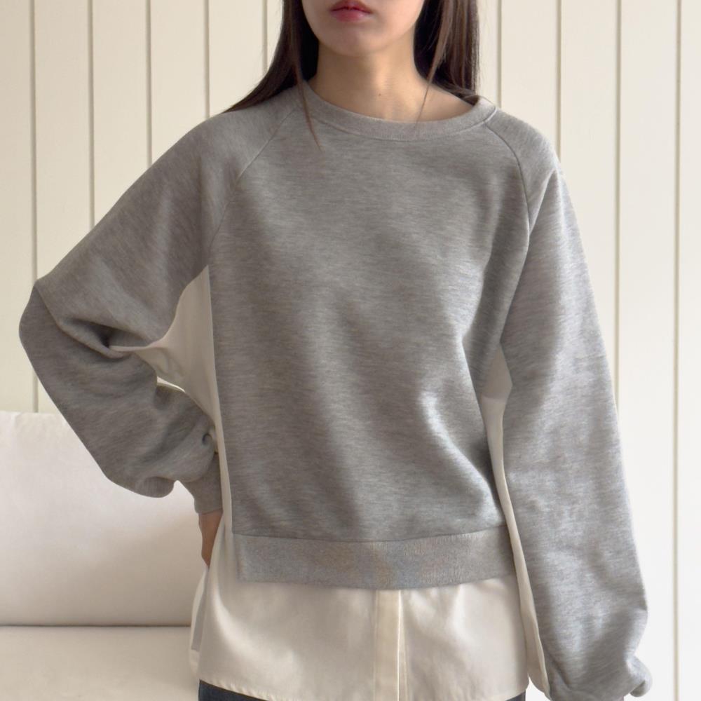 여자 래글런맨투맨 레이어드 투톤 퍼프 오버핏 티셔츠