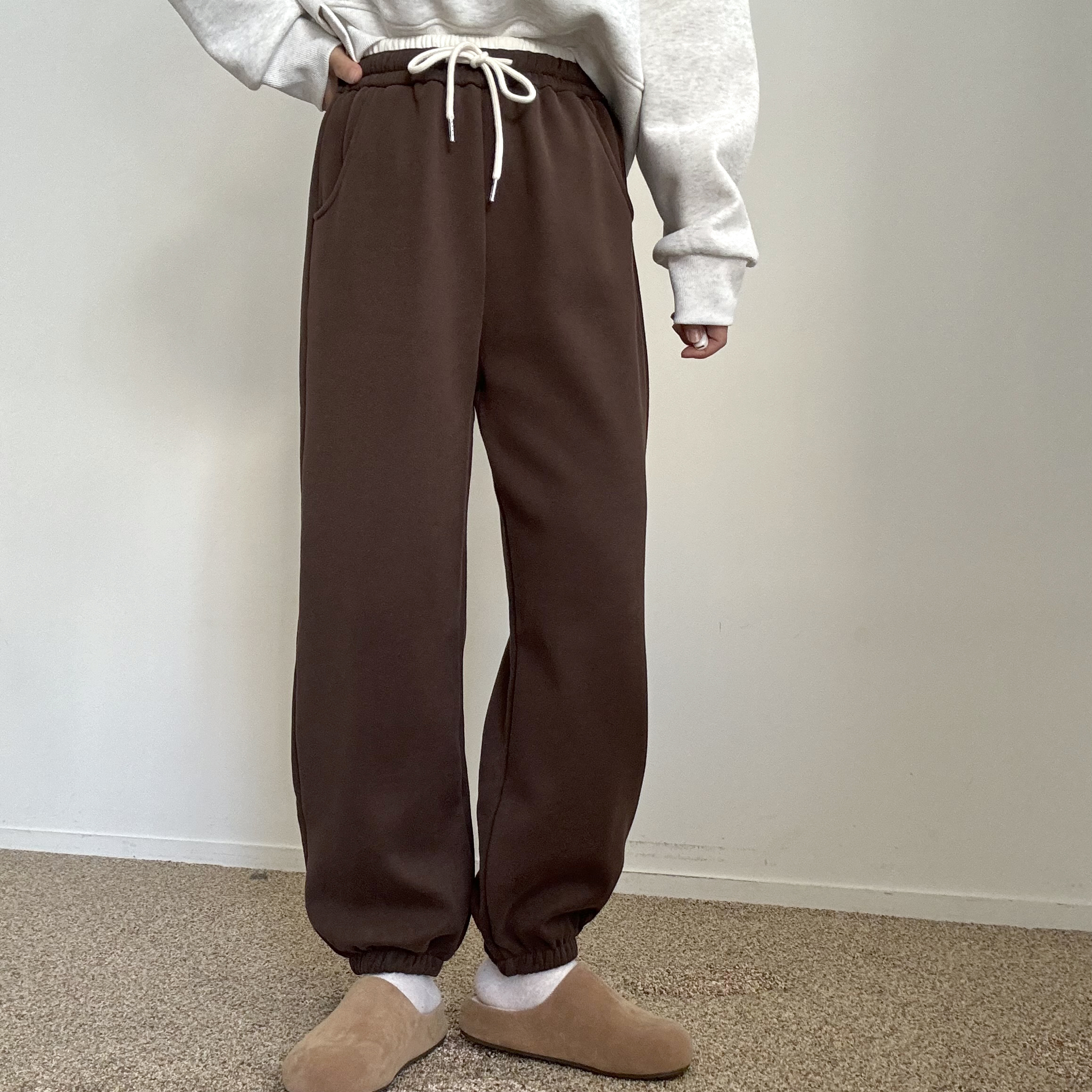 대박추천 겨울 교복바지 왕따뜻 밍크 융기모 2단 허리배색 밴딩 하이웨스트 여유핏 조거 트레이닝바지