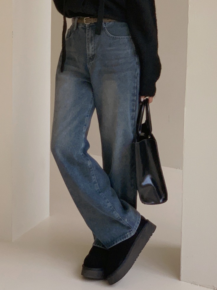 [25-34] [숏/기본/롱] 포히리트 속기모 워싱 와이드 데님 팬츠 청바지(겨울-가을-데일리룩-베이직-모던-빅사이즈-34사이즈-기모-캐주얼-유니크 )