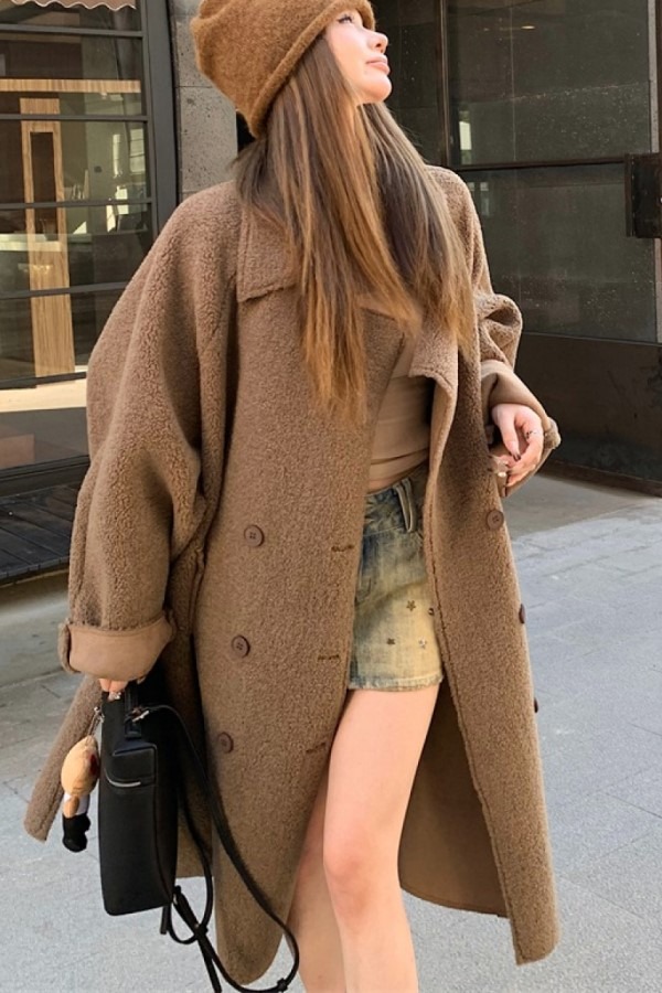 제니 뽀글이 양털 긴팔 오버핏 울 모피 코트