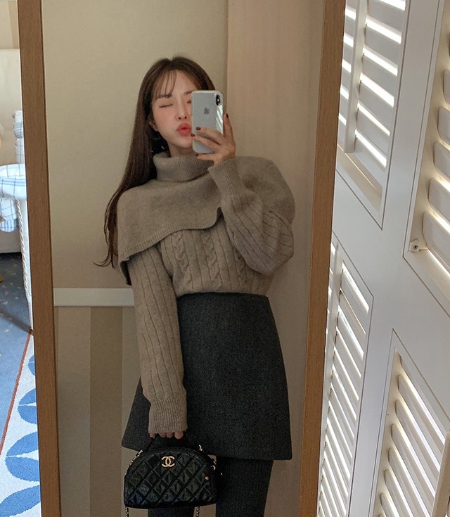 [숄가디건SET]쏘티 케이블 긴팔니트(3color) [케이프 목폴라 니트 꽈배기 짜임 반목 폴라넥 시보리 투피스]