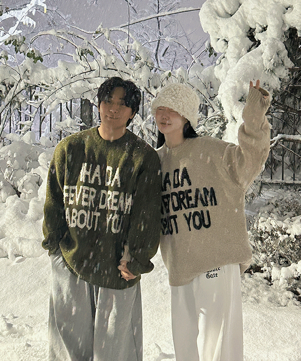 #12909 [울6%] 커플룩! 남녀공용 오버핏 라운드 레터링 긴팔 니트t : 3color