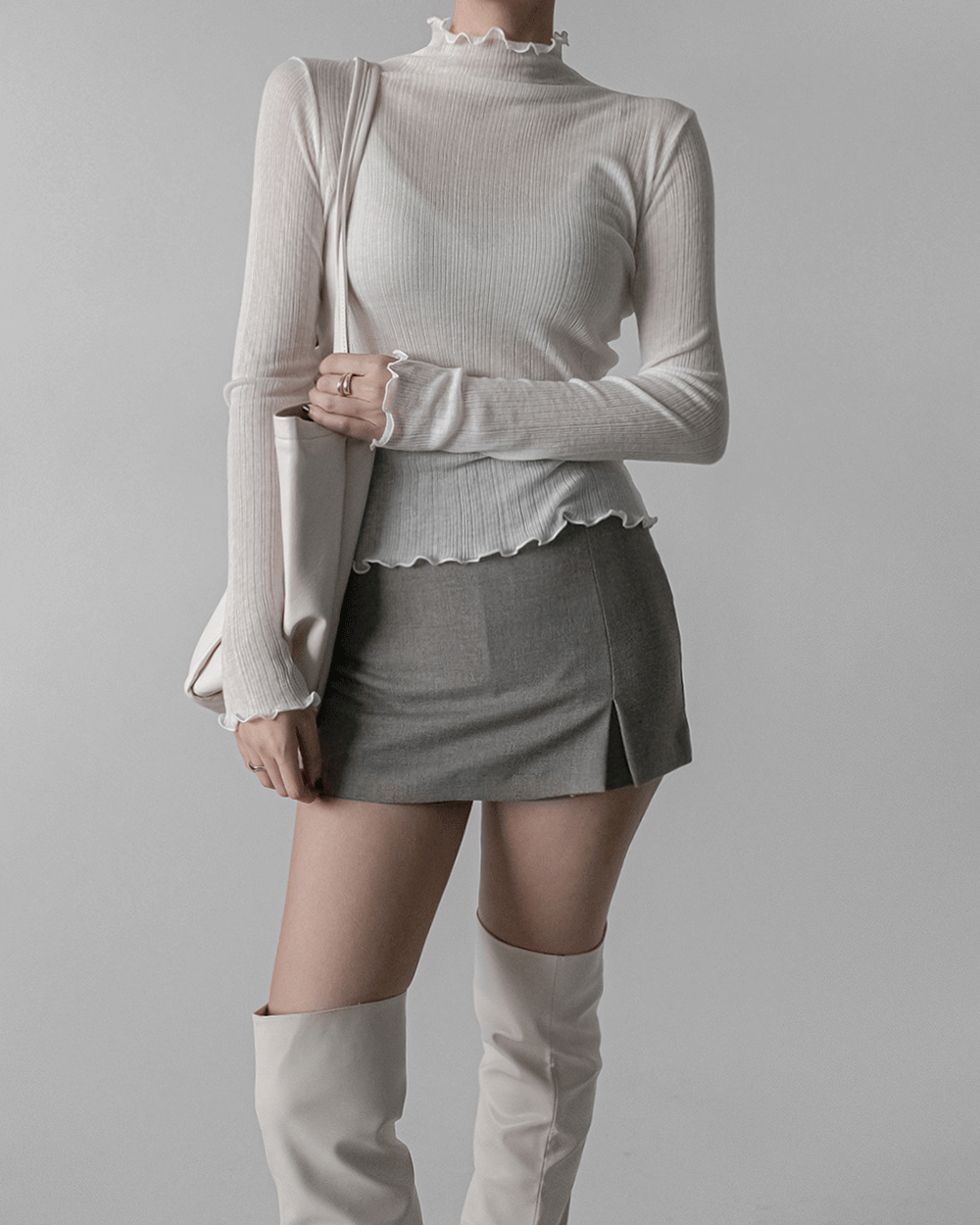 [하객룩/당일출고] 물결 러플 폴라티셔츠