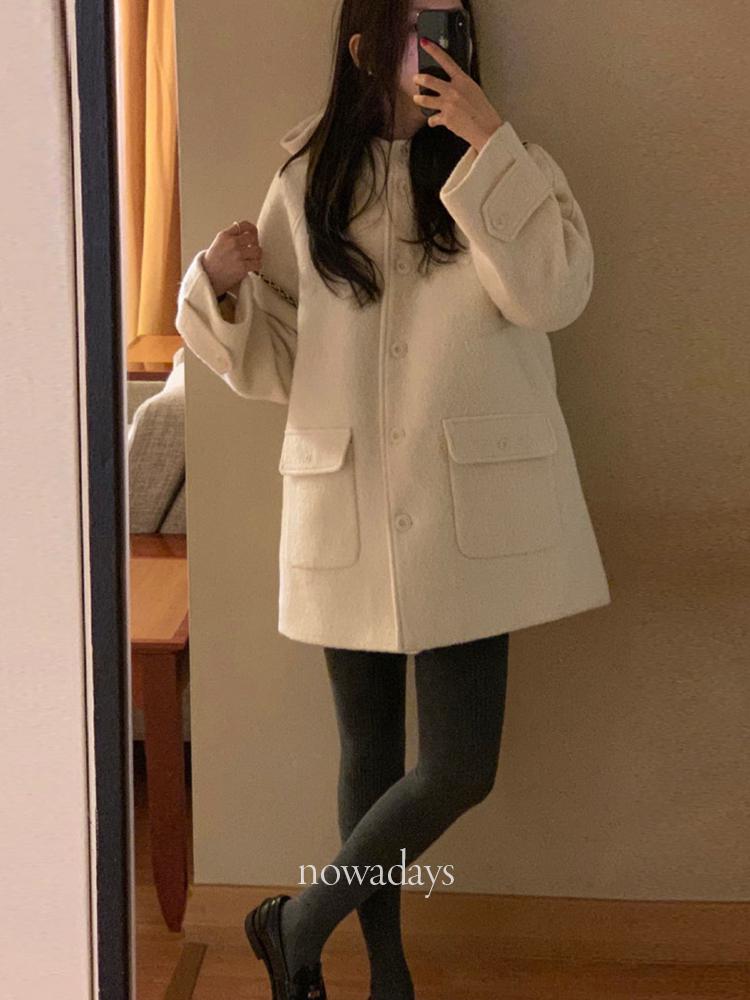 miel 미엘 네이 후드 코트 울100 포켓 싱글 하프 ct (3col)