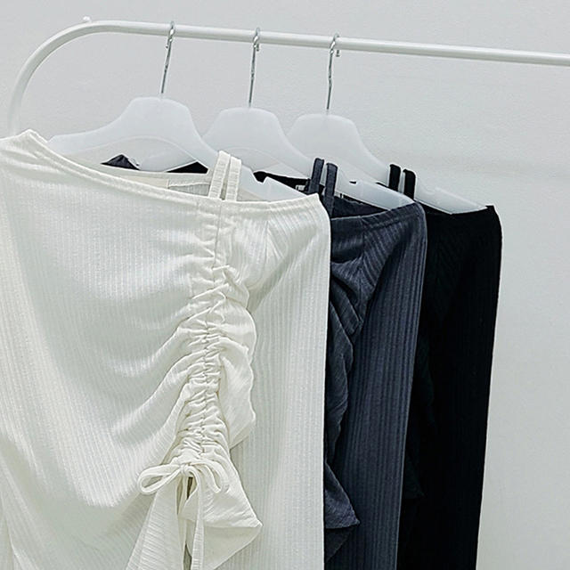 [당일/몸매보정💕/팔뚝살커버/유니크/힙한/섹시/말라핏/연말룩/파티룩/허리잘록/원숄더/y2k] 로카 슬림핏 언발 어깨 트임 사선 스트링 셔링 끈 원 오프숄더 골지 니트 크롭 긴팔티셔츠