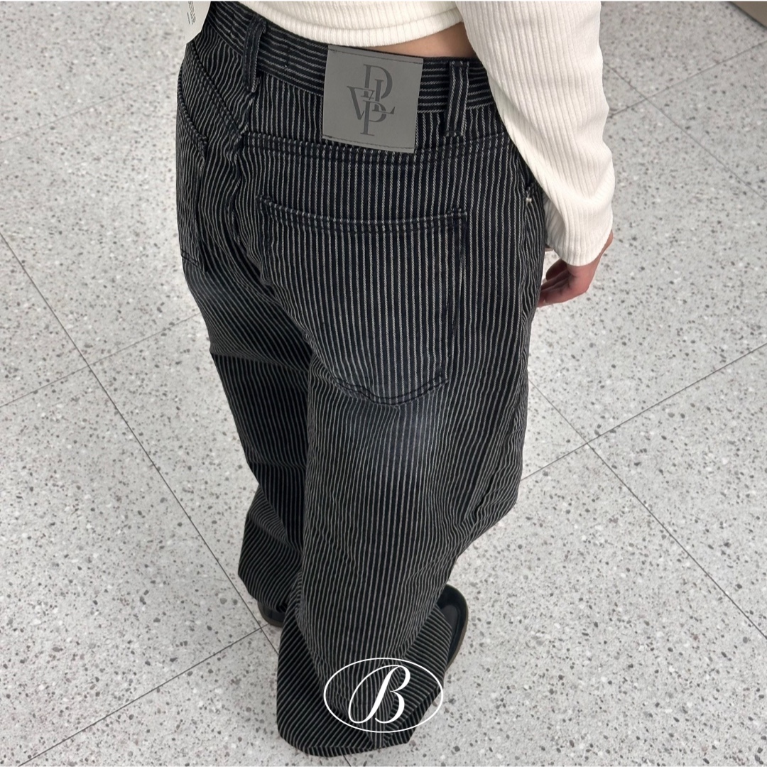 블랙 스트라이프 와이드 데님 팬츠