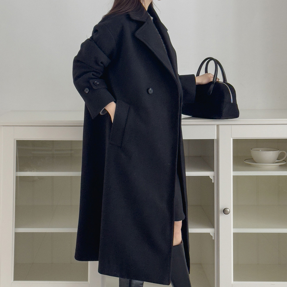 여자 겨울 연말룩 더블버튼 박시 키큰녀 검정 롱코트