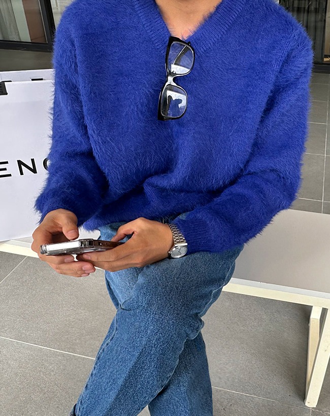 [남자친구선물] [남녀공용]남자앙고라니트 브이넥니트 오버니트 남자니트 연말코디 레드 모헤어 남자옷 남친룩 데이트 기념일 이벤트 앙고라 크리스마스 커플니트 데이트 연말룩
