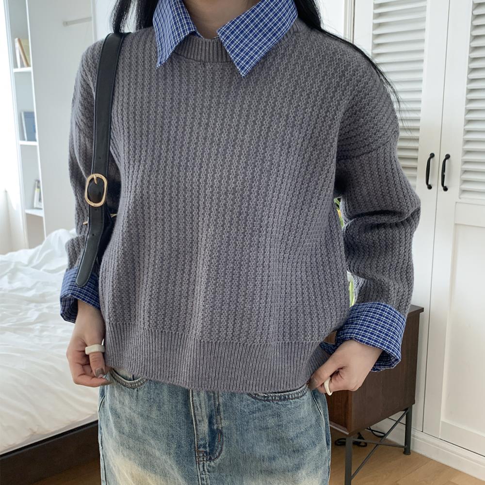클래식 레이어드 체크셔츠 투톤 겨울출근룩 니트