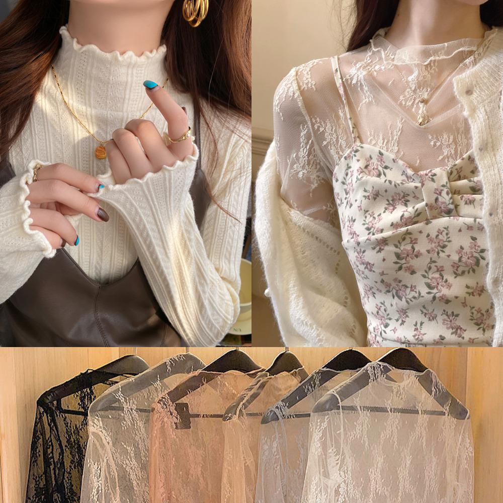 얇은 레이스 시스루 이너목폴라 기모 면 폴라 티셔츠 레이어드티