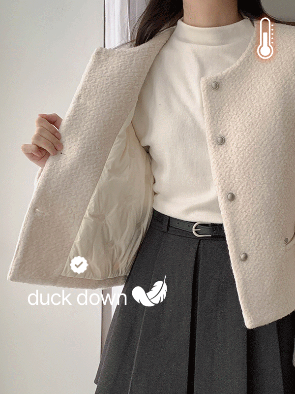 [✨플래시세일][🤎겨울하객룩] 덕다운 부클 자켓 겨울아우터/부클자켓/출근룩/연말룩/크리스마스룩/누빔울자켓/누빔쟈켓/연말데이트룩