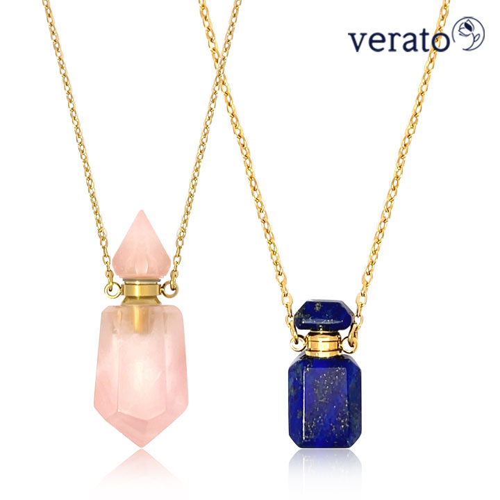 베라토 천연 원석 라피스라줄리 로즈쿼츠 퍼퓸 목걸이 써지컬 보석 선물 향수 공병 스포이드 포함 케이스