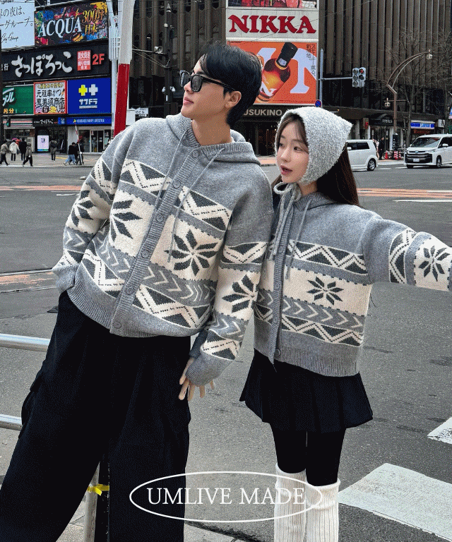✨MADE/당일배송✨[크롭or남녀공용] 도톰고퀄 2사이즈 노르딕 후드 가디건 여자 크롭 남녀공용 자체제작 커플룩 시밀러룩 겨울 연말 크리스마스 최저가 겨울니트 커플니트 커플니트