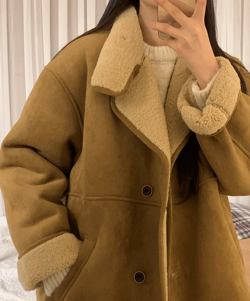 [무료배송]전체 퍼 안감 / 스웨이드 하이넥 버튼 롱 무스탕 하프 코트 자켓