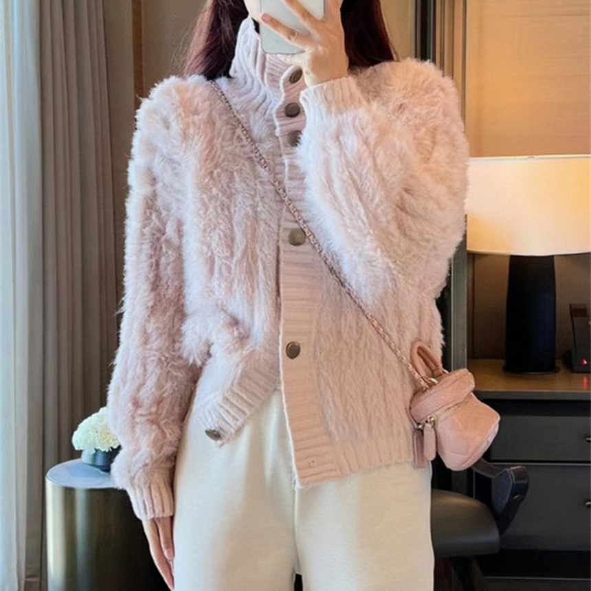 여성 여자 하이넥 터틀넥 목폴라 앙고라 퍼 털 루즈핏 단추 버튼 가디건 앙고라하이버튼가디건