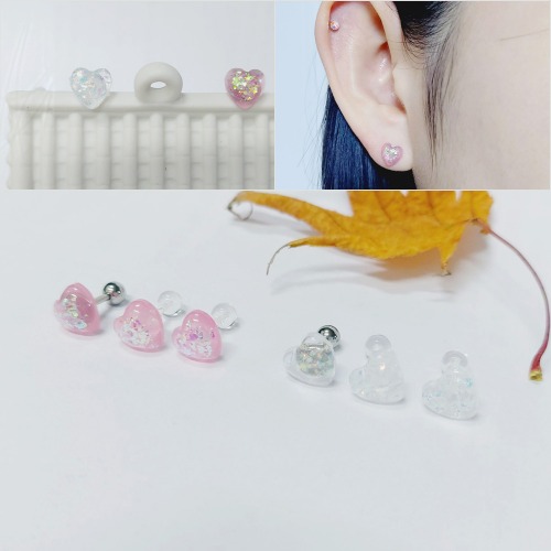 매드킨 [PN-216] 홀로그램 하트 (살튀방지) 피어싱 (스틸피어싱, 실리콘피어싱 아크릴피어싱 투명피어싱 투명귀걸이 딱붙는귀걸이 무알러지피어싱 미니피어싱어싱))