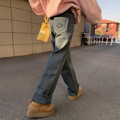 [✨기모안감/포근따뜻❄️데일리핏/겨울데님👍퀄보장🚛무배] 홀리 스마일 기모 데님팬츠 s161366