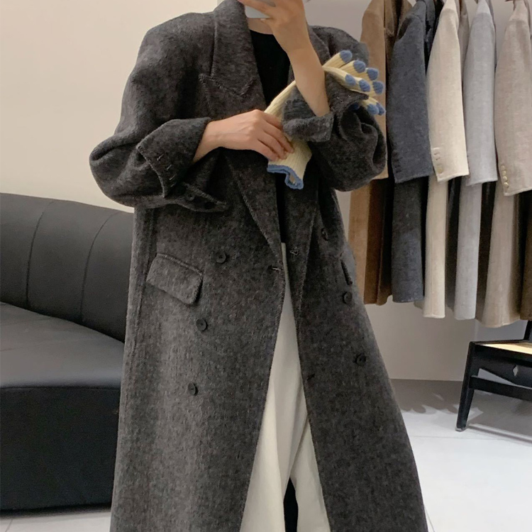(당일출고/핸드메이드/울혼방) 브이넥 카라 헤링본 투버튼 더블버튼 루즈핏 오버핏 롱 울 핸드메이드 겨울 아우터 자켓 점퍼 코트 3color