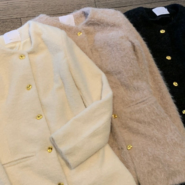 [허리잘록핏!] 금장단추 노카라 긴팔 트위드 하프 울코트&미니원피스 (겨울결혼식 자켓아우터 하객 상견례 키작녀 빅사이즈 통통 크리스마스 연말룩 생일파티 공주 라운드넥 앙고라)