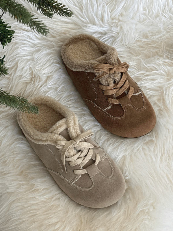 [겨울🎄어그] 뽀글이 털 안감 스웨이드 블로퍼 뮬 (4cm)