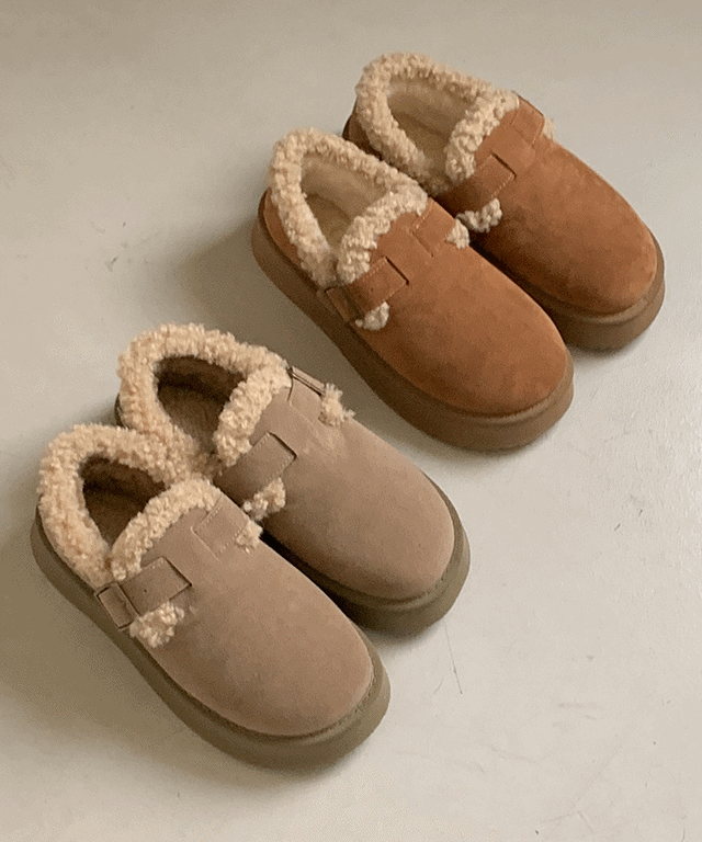 여성 겨울 스웨이드 뽀글이 양털 버클 미니 숏 부츠 로퍼 단화 슬립온 2컬러