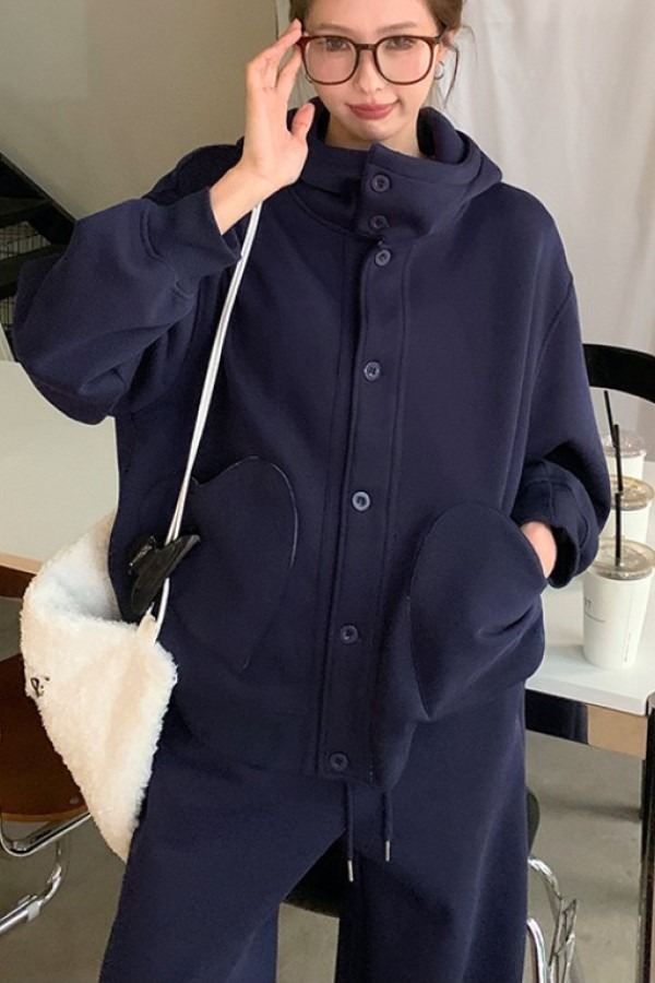 set 단추 하이넥 긴팔 자켓 캐주얼 와이드팬츠 투피스세트