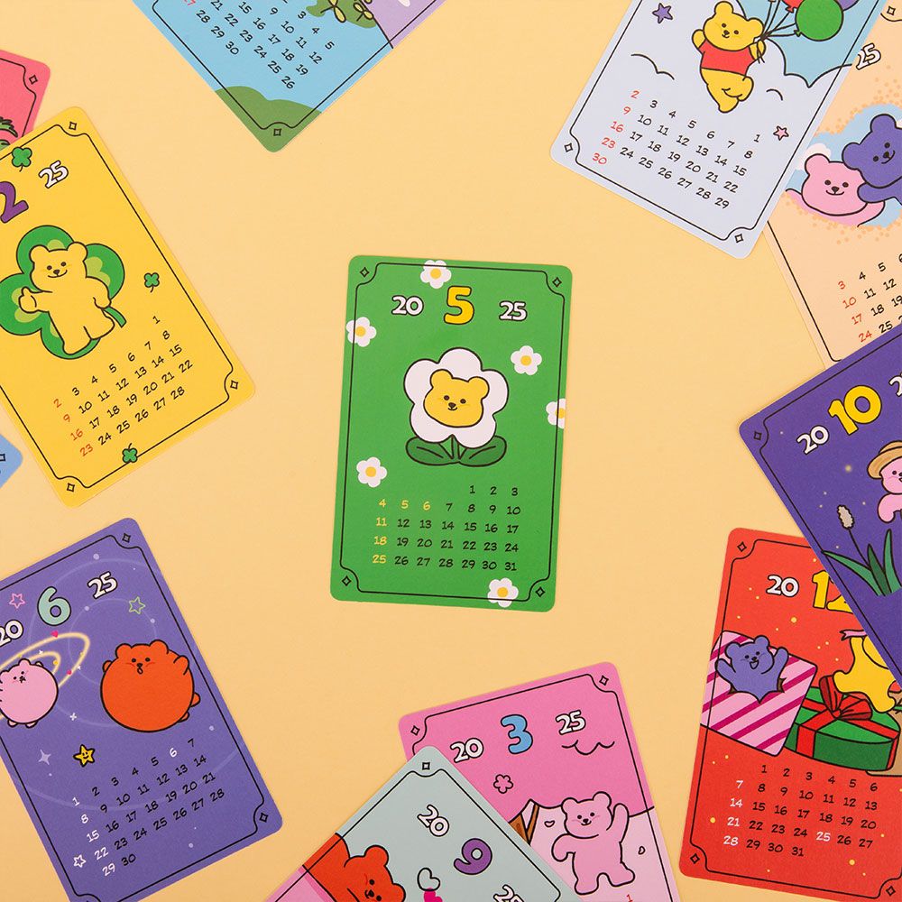 2025 귀여운 일러스트 카드캘린더 낱장형 휴대용 미니 2025캘린더 25년 달력 2025탁상달력 2025달력 2025년탁상달력