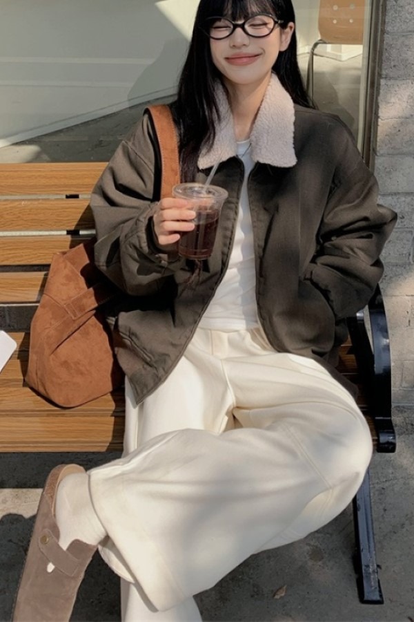 로야 양털 폴로 카라넥 긴팔 코튼 자켓