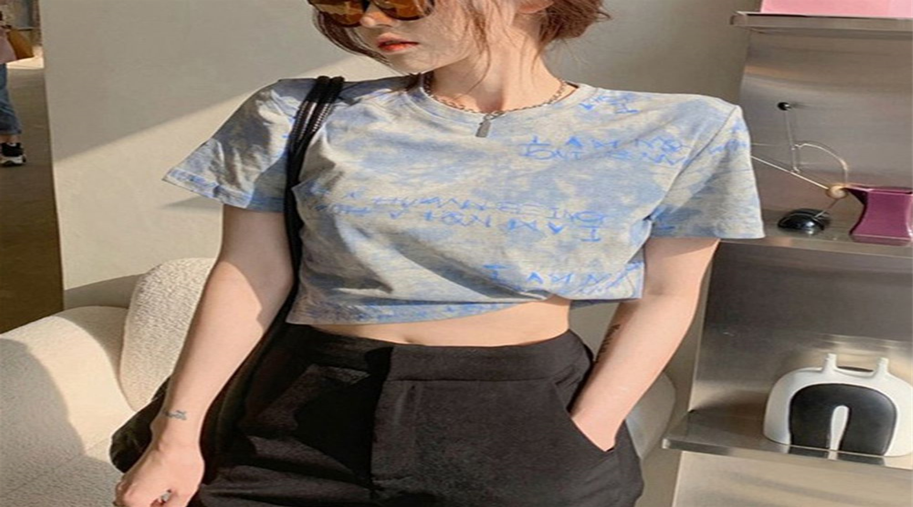 블루톤 염색 여성 세미크롭 반팔티 1P 데일리 티셔츠