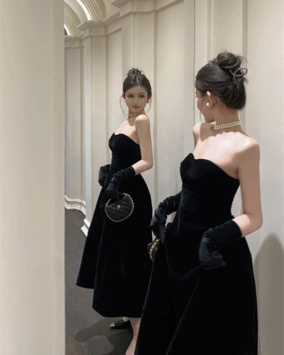 [🖤 오프 벨벳OPS ] 오프숄더 슬림 셔링 주름 A라인 롱원피스 플레어 셀프웨딩 브라이덜 스냅촬영 청순 섹시 사계절 파티룩 여친룩 데이트룩 러블리 학생룩 무대의상 공연룩 클럽 MZ Y2K 여신룩