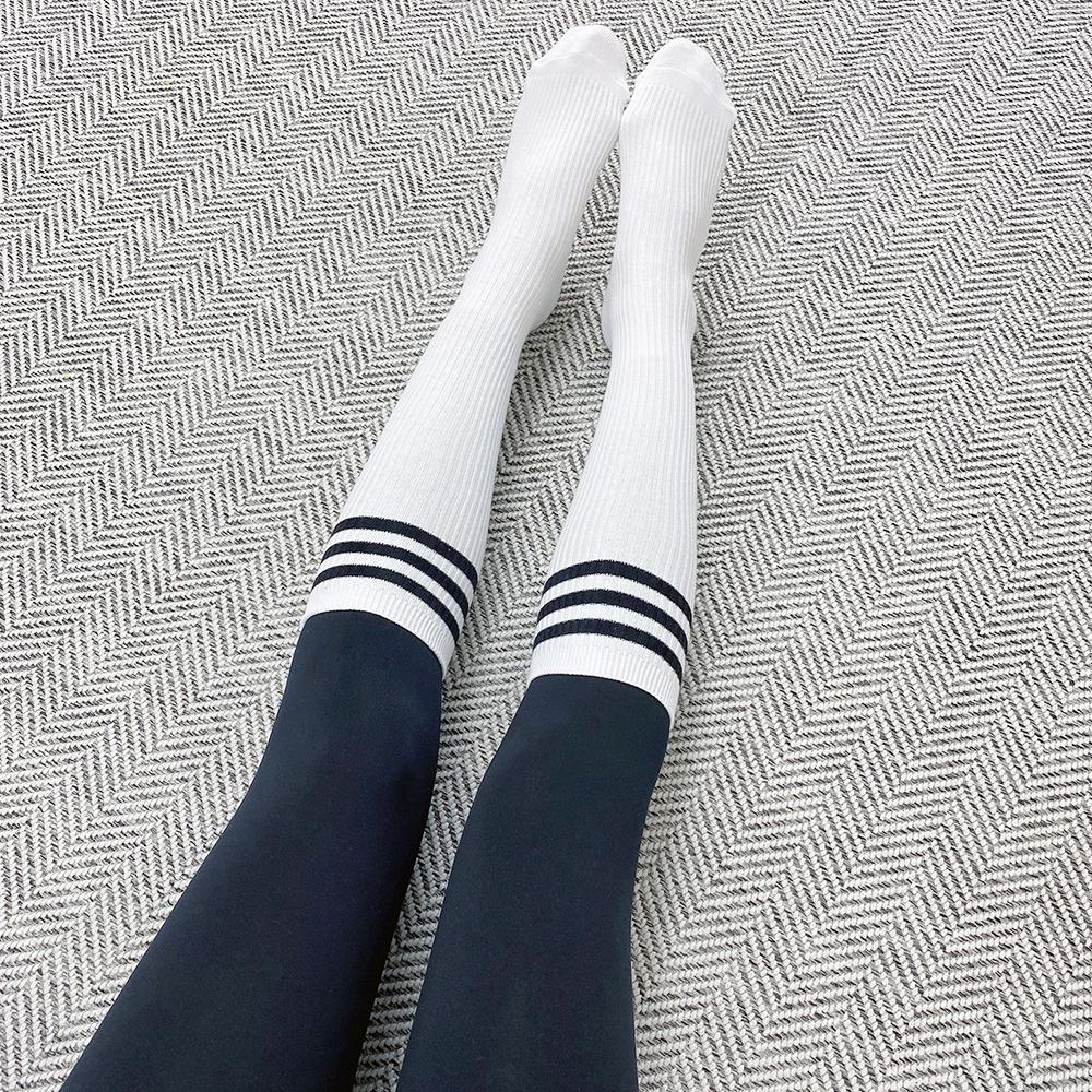 [1+1할인] 라인 골지 니삭스 레깅스 양말코디 요가 필라테스 헬스 롱삭스 긴 양말