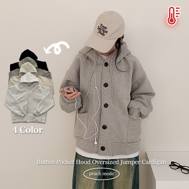 [국내제작/고퀄리티] 레디인 버튼 오버핏 후드 가디건 숏코트 (4color)