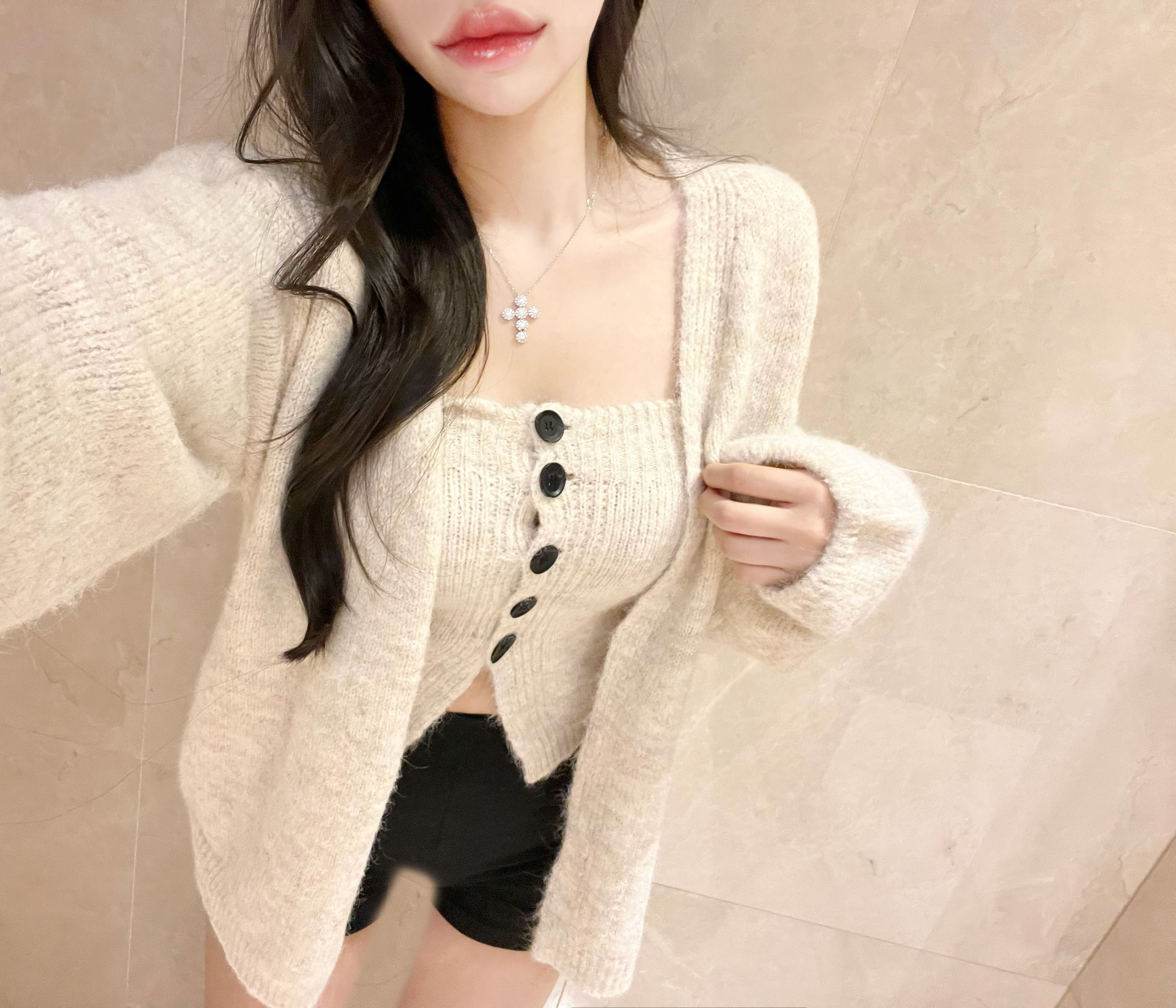 [⚜️극강여리핏SET⚜️]앙고라 니트튜브탑+롱가디건 투피스세트 니트가디건 앙고라가디건 루즈핏 가디건 아우터 봄 가을 겨울 연말