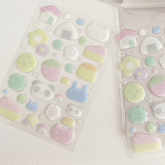 [단독/당일출고] 에폭시 입체 스티커 판다 네잎클로버 행운 토끼 오니기리 주먹밥 나루토마키 토끼 푸딩 스티커 아이패드 꾸미기 다꾸 벽꾸 친구 생일선물 폰케이스 스티커