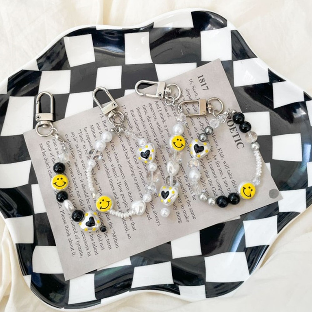 블랙 스마일 비즈 키링 만들기 세트 스트랩 DIY 키트 4종 [핸드폰 휴대폰 스마트폰 줄 재료 동대문 부자재 자재 가방 걸이]