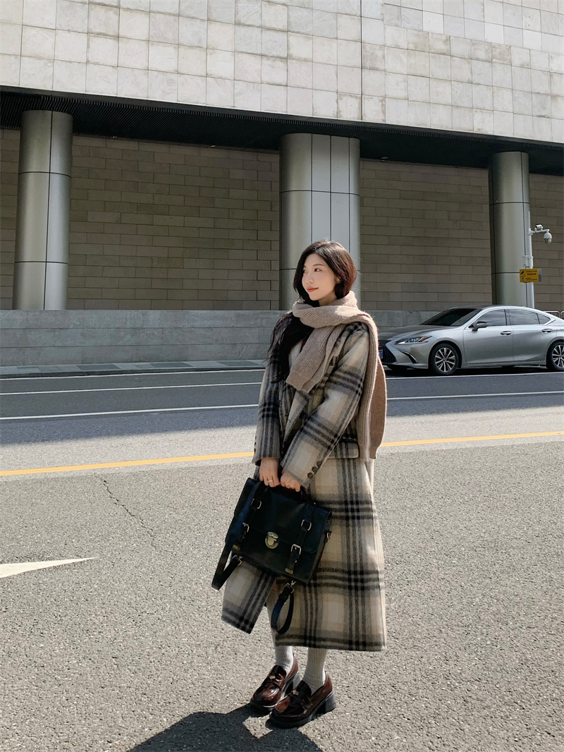 체크 모직 롱코트 겨울 롱코트 SE6850