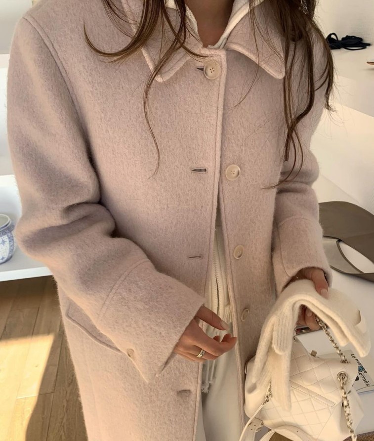 리에뜨 모그코트 여성코트 롱 겨울 울 부클 싱글 핑크코트