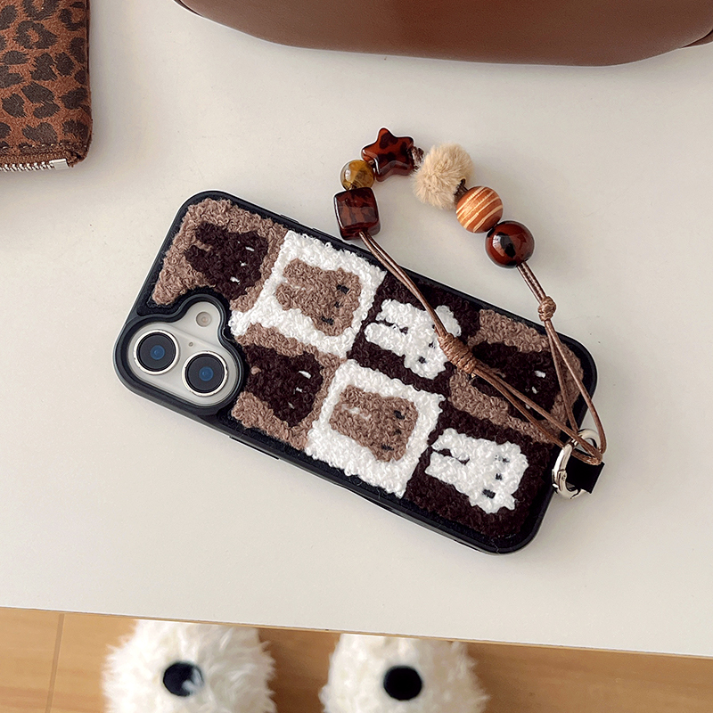 MADE🤎🐰 토끼 패턴 뽀글이 털 폰케이스 아이폰 7 8 SE2 x 11 12 13 14 15 16 17 미니 프로 갤럭시 S25 S24 23 Z플립