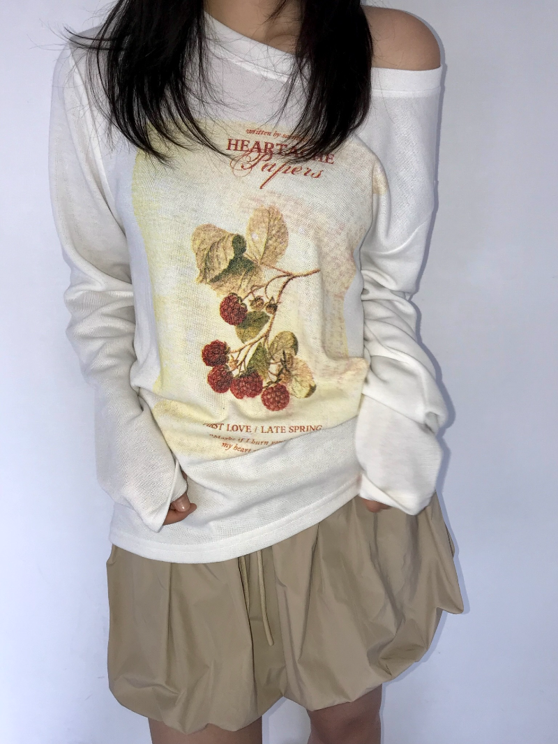 롱슬리브 빈티지 원숄더 티