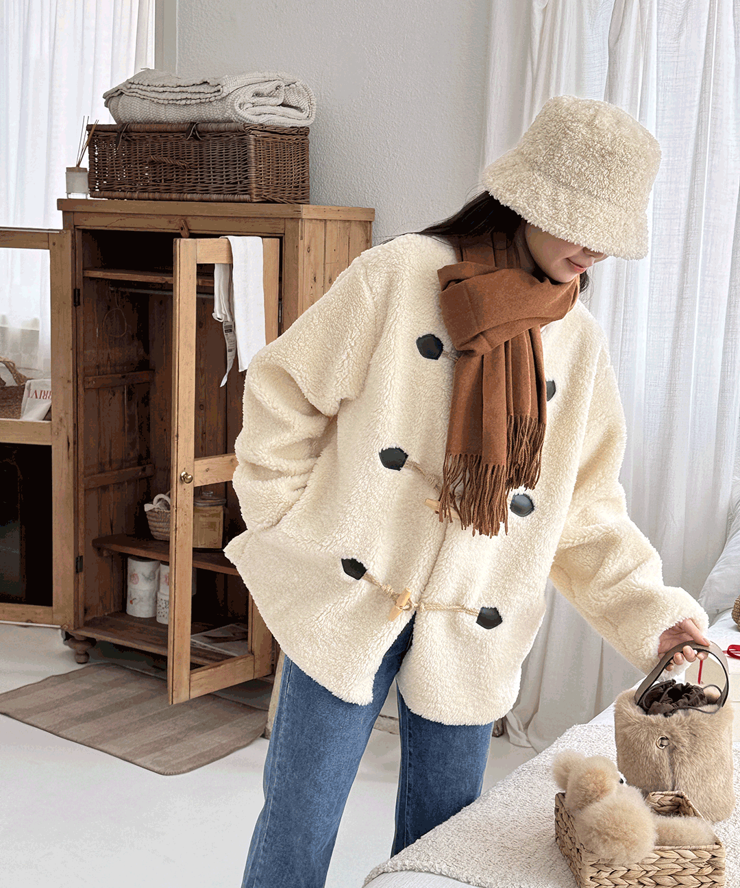 [겨울신상☃️/당일출고🚚/따뜻🔥] 겨울 뽀글이 더플 떡볶이 양털 노카라 부클 오버핏 코트 자켓 아우터