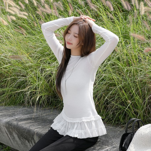 [❤️아기피부 같은 소프트 촉감👍퀄보장🎀캉캉프릴/레이어드룩] 아엘 레이스 티셔츠 s161539