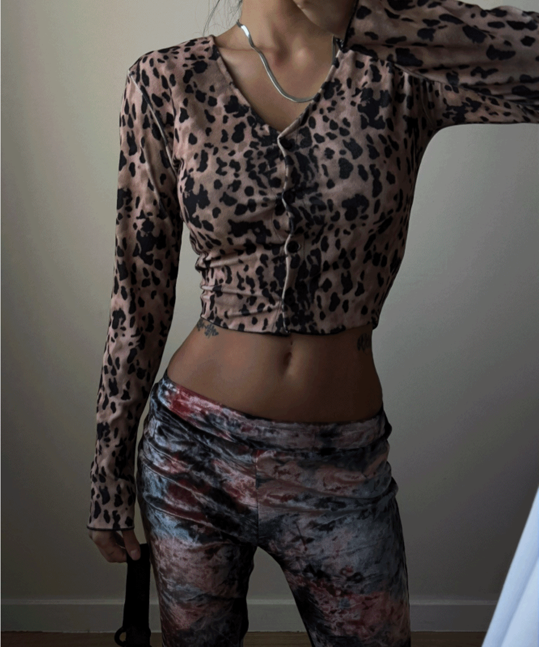 핫 레오파드 버튼 가디건