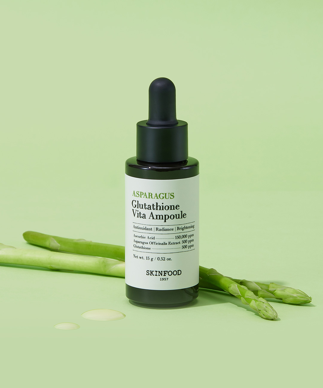 화장품법에 따라 기재, 표시하여야 하는 모든 성분'정제수, 아스코빅애씨드(150,000 ppm), 다이카프릴릴카보네이트, 프로판다이올, 다이프로필렌글라이콜, 부틸렌글라이콜, 페닐트라이메티콘, 다이아이소스테아릴말레이트, 하이드로제네이티드폴리(C6-14올레핀), 글리세릴스테아레이트, 1,2-헥산다이올, 소듐하이드록사이드, C12-14알케스-12, 피이지-100스테아레이트, 비닐다이메티콘, 알파-비사보롤(5,000 ppm), 폴리글리세릴-3다이스테아레이트, 소듐스테아로일글루타메이트, 폴리아크릴레이트크로스폴리머-6, 하이드롤라이즈드스클레로튬검, 알란토인, 토코페롤(1,001 ppm), 잔탄검, 소듐하이알루로네이트, 풀루란, 판테놀, 에틸헥실글리세린, 글리세릴스테아레이트시트레이트, 글루타티온(500 ppm), 아스파라거스추출물(500 ppm), 오렌지꽃오일, 리씨열매오일, 아데노신, 자몽껍질오일, 베르가모트오일, 다이소듐이디티에이, 베타-글루칸, 스피어민트잎오일, 바추잎잎추출물, 글리세린, 솔비톨, 해바라기씨오일, 수크로오스스테아레이트, 카프릴릭/카프릭트라이글리세라이드, 베타-카로틴, 페룰릭애씨드, 헤스페리딘, 에르고티오네인, 리모넨, 리날룰, 시트랄