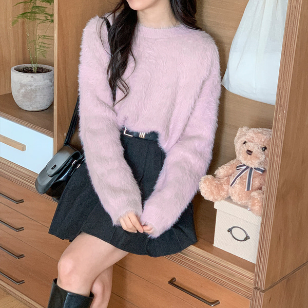 사미으 베이직 세미크롭 라운드 퍼 니트-3color