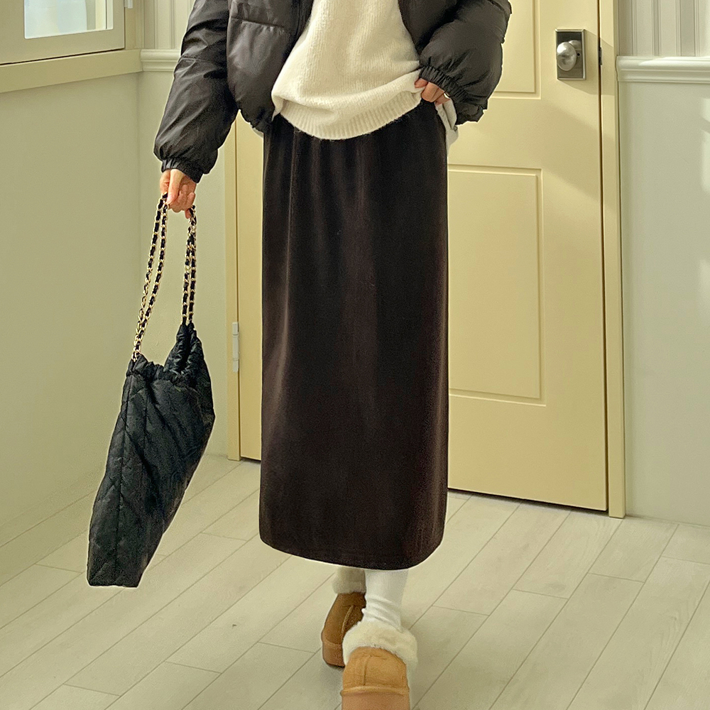 엠버 융기모 코듀로이 뒷트임 롱 스커트