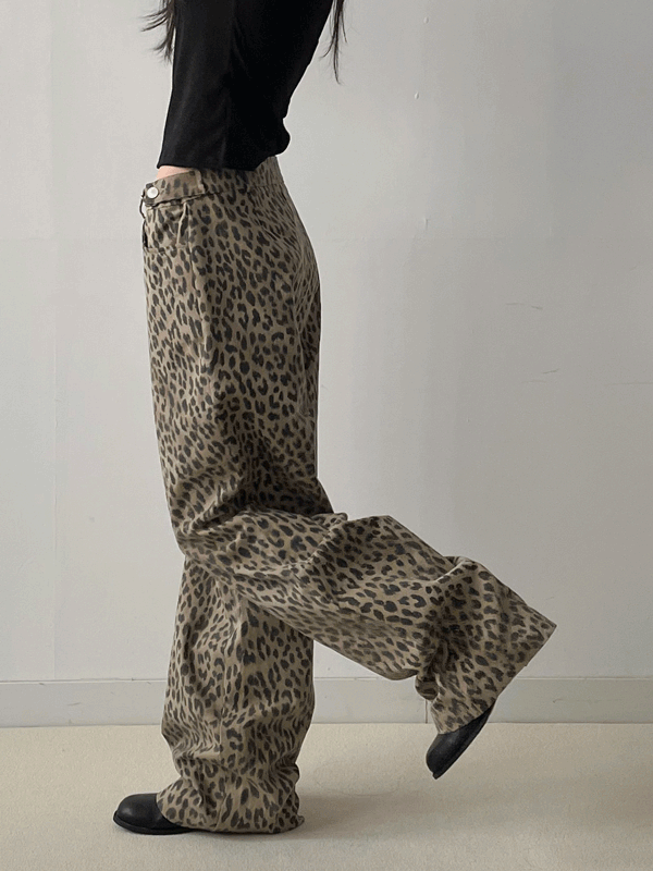 [허리조절가능] 레오파드 비죠 와이드 팬츠