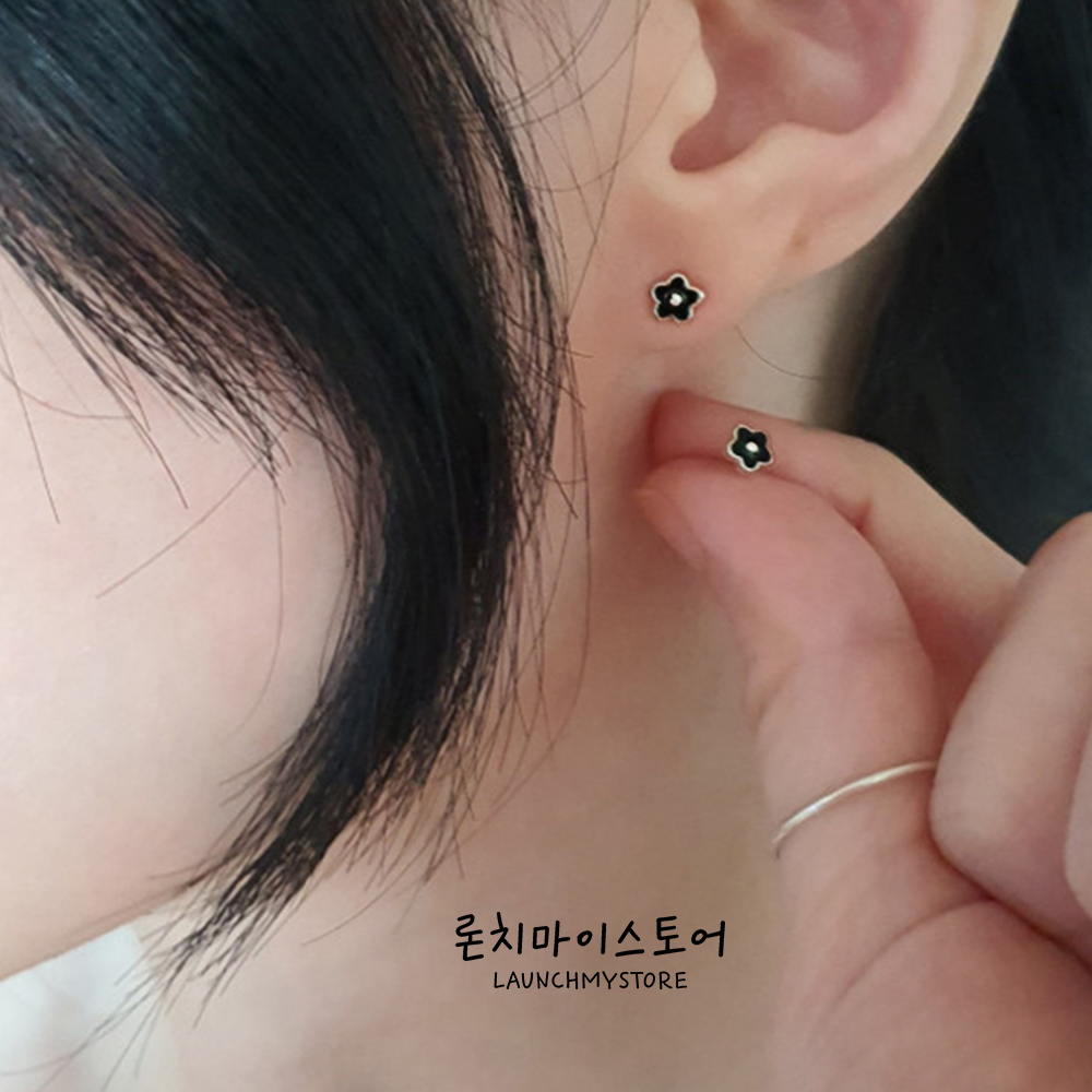 론치마이스토어 실버 미니 플라워 꽃 실버925 귀걸이 블랙 포인트