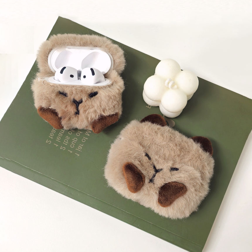 뽀송뽀송🧡 카피바라 에어팟 케이스 귀여운 부드러운 특이한 하찮은 봉제인형 캐릭터 털케이스 말랑말랑 인형 디자인 겨울케이스 겨울템 겨울감성 1세대 2세대 3세대 4세대 PRO