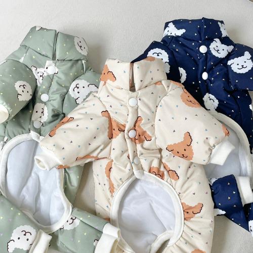 (4온스) 댕댕이 곰돌이 한파 패딩 올인원 따뜻한 겨울 강아지패딩